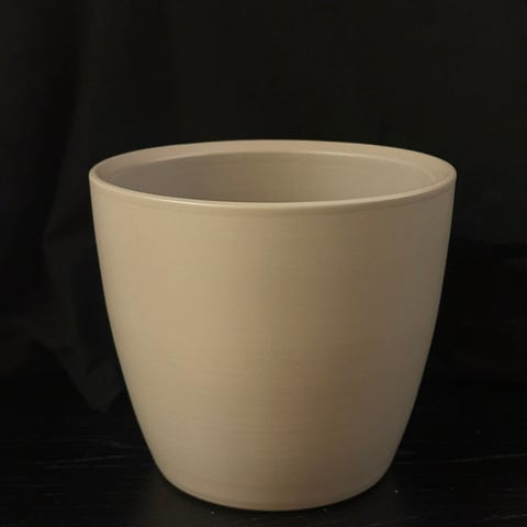 Lys blå blomsterpotte fra IKEA med noen anmerkninger. Diameter omtrent 10cm i bunn, høyde litt under 12 cm