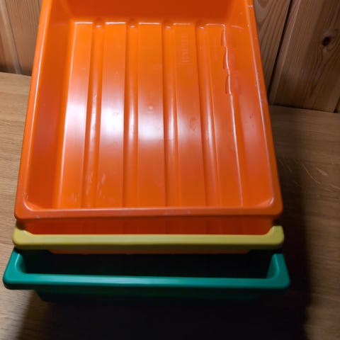 De røde er uten skillevegger inni, den hvite er med skillevegger