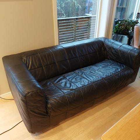 Sort skinnsofa- må hentes raskt