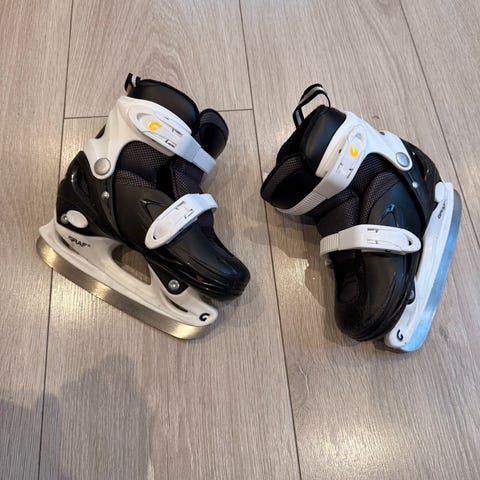 Graf barne skøyter for ishockey i størrelse 30-33. Modellen har justerbar lukking med spenner og borrelås for god tilpasning rundt foten. Mykt, polstret innerfôr gir ekstra komfort og varme. Ytterskallet er i solid plast med støtte rundt ankelpartiet. Skøytene har ishockeyklinge som egner seg til bruk på isbaner og skøytebaner for barn i aktuell skostørrelse.