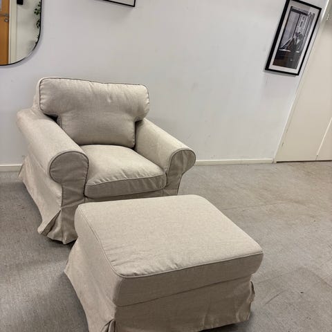 Puff med oppbevaring fra IKEA selges for 600 kr. Nypris 2095.