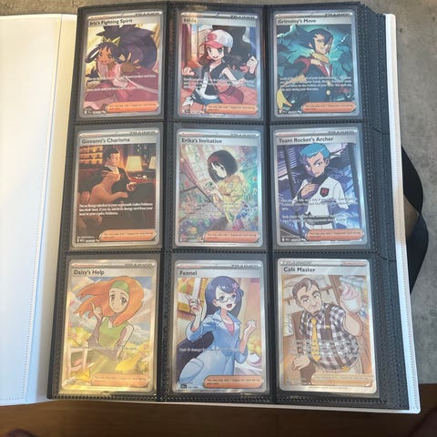 Pokémon samlekort album med blandede kort. Inneholder ulike Pokémon-kort i plastlommer, flere med holo- og full art-design. Kortene ser ut til å være fra forskjellige serier og utgaver. Egner seg som utgangspunkt for samling eller som tillegg til eksisterende samling. Antall kort og nøyaktige serier kan telles og spesifiseres av selger ved behov.