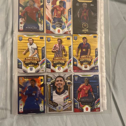 Topps Match Attax samling fotballkort fra ulike serier og sesonger. Albumet inneholder kort med forskjellige spillere, lag og spesialkort som for eksempel Limited Edition, Legend, Winner, Top Master og andre varianter. Kortene har ulike design, farger og motiv, inkludert klubb- og landslagsspillere samt laglogoer. Egnet for samlere av fotballkort som ønsker en variert samling fra Topps Match Attax-universet.