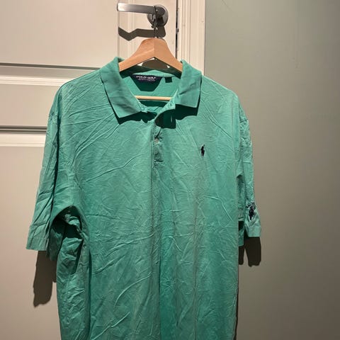 Klassisk Polo Ralph Lauren polo i størrelse XXL. Blå med oransje brodert logo på brystet. Tidløs modell som passer til både hverdag og sommer.