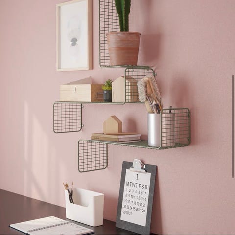 3 stk Hylle for vegg, plate øverst og oppsamling under
