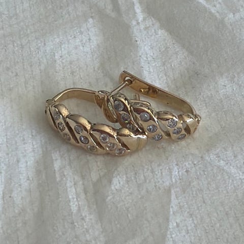 Veldig fine øredobber som er formet som fjær selges. Kjøpt på Høyer, men jeg husker ikke merket. Kun brukt et par ganger.