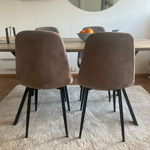 Søkeord: spisestol, velour, velur stol, blå stol, spisebord stol.