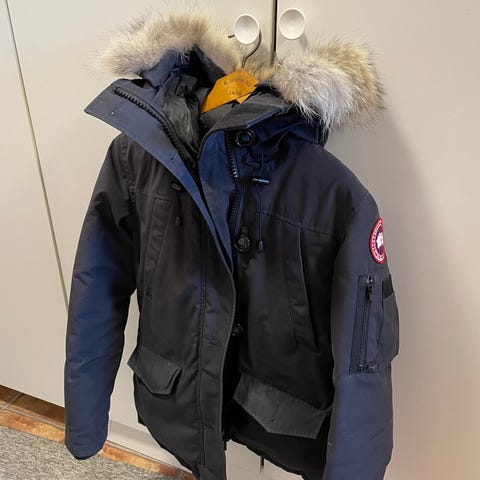 Canada Goose dunjakke for dame i størrelse S. Jakken er brun og fylt med dun. Modellen har hette, glidelåslukking i front og lommer med klaff. Egnet som yttertøy i kaldt vær.