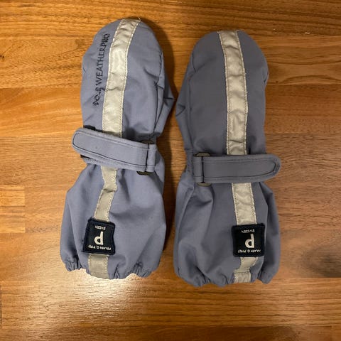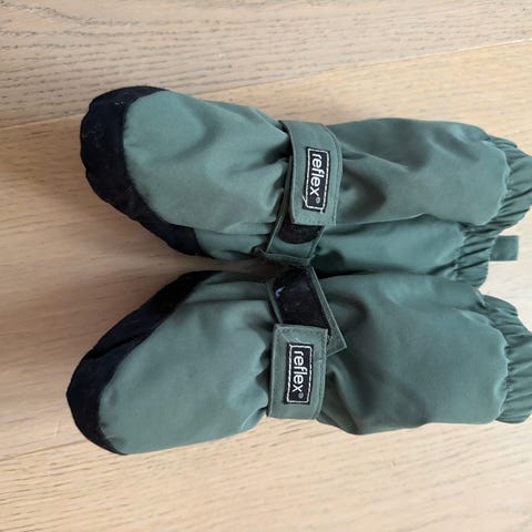 Polarn O. Pyret votter for barn i størrelse 86. Vottene er unisex og laget i polyester. Modellen har glidelås langs oversiden for enkel av- og påkledning, strikk rundt håndleddet for bedre passform og forsterket materiale i håndflaten. Innsiden har mykt fôr for økt komfort. Fargen er grønn med mørke kontrastfelt.