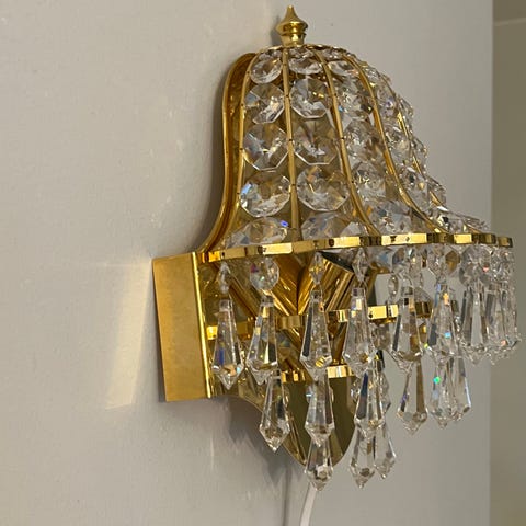 Klassisk design med vakre krystaller og gullbelagt utførelse. Alt fungerer som det skal og ser meget pent ut.