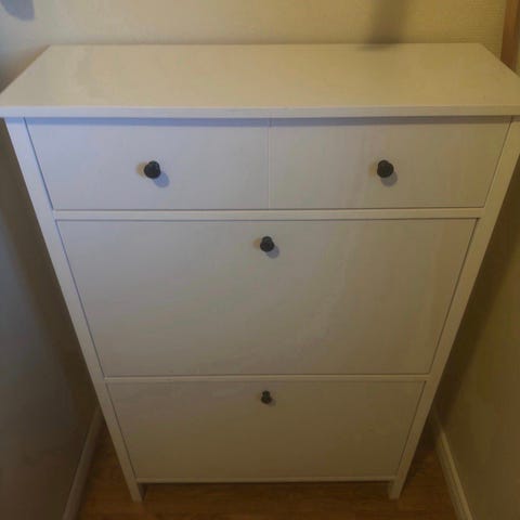 Fint skoskap selges. Har tatt ut skuffene, så den er enkel å bære. Men jeg kan også demontere den mer om det er ønskelig. Hentes på Tangen på Nesodden i fjerde etasje med heis.