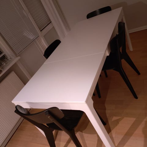 Bord som kan forlenges med plate i midten.