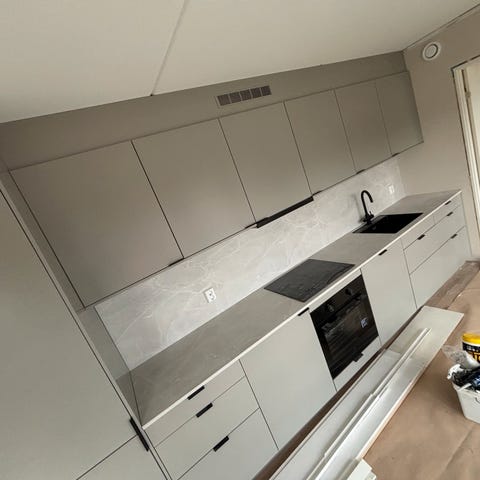En plate 61 x 175 med utskjært hull for koketopp. Koketoppen følger ikke med.
