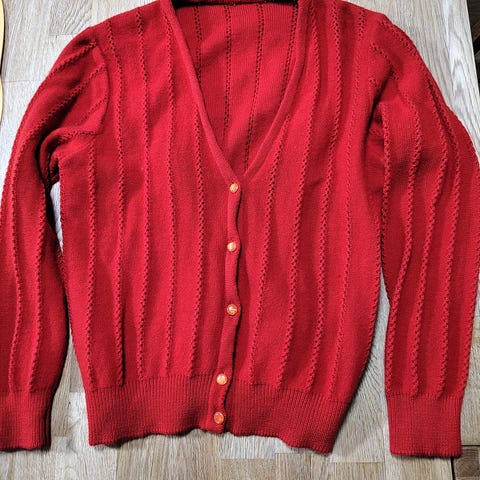 #ull #ulljakke #ullgenser #jakke #cardigan #rød #rødt #vintage #degogmeg