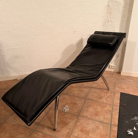 Deilig sjeselong i skinn. Selges pga overgang til original (LC4). Skinnet er pent.