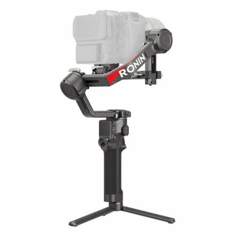 DJI Ronin kamerastabilisator gimbal. Motorisert stabilisator for kamera som gir jevnere opptak ved foto og video. Egnet for montering av kompatible kameraer på håndholdt gimbal for bedre kontroll over bevegelser og vinkler. Stativfot nederst gir mulighet for å sette stabilisatoren fra seg på jevne underlag.