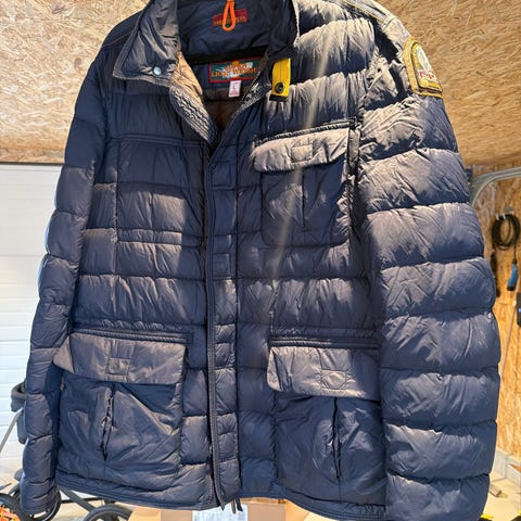 Parajumpers vinterjakke for herre i størrelse L. Jakken er svart og fylt med dun. Den har hette med pelskant, flere utvendige lommer og karakteristiske Parajumpers-detaljer. Egnet som varm vinterjakke i kaldt vær.