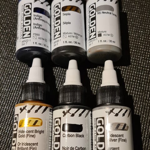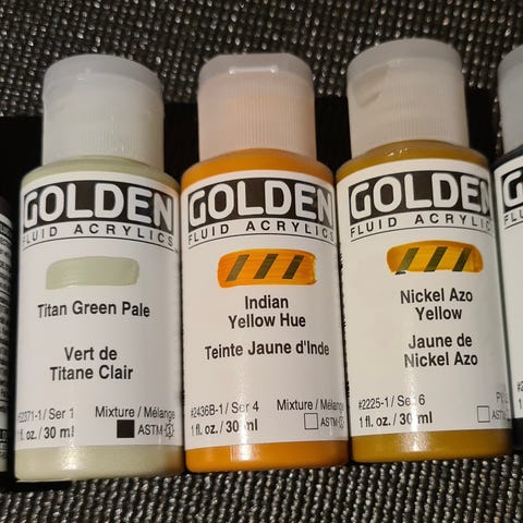Settet inneholder kunstnerakrylfarger i følgende pigmenter: