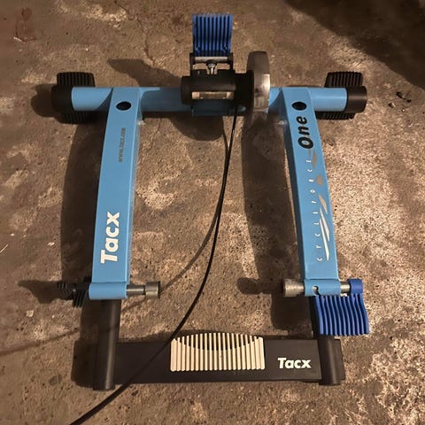 Brukt tacx sykkelrute med manuell justering av motstanden selges billig. Godt brukt, men mye igjen! Kan legges sammen for å ta mindre plass. Hektes på sykkelens bakhjul. Aksling følger med