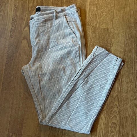 Stilig bukse fra I Say. Lys bunnfarge med dekorativt mønster i grå/beige toner. Behagelig kvalitet med stretch og god passform. Knappelukking i front og klassiske lommer foran og bak.
