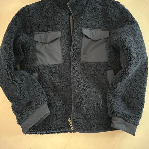 Tykk fleecejakke for herre i størrelse M. Jakken er blå og laget i fleece-materiale. Den har hel glidelås foran, to glidelåslommer på brystet og to lommer på side. Mansjettene har tommelhull. Egner seg som mellomlag eller ytterlag ved kjøligere vær og til ulike utendørsaktiviteter.