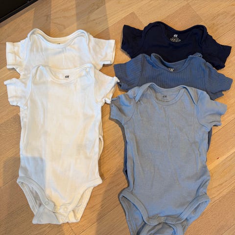 6 stk bodyer fra HM, str 68, pent brukt, ingen hull eller flekker som jeg kan se