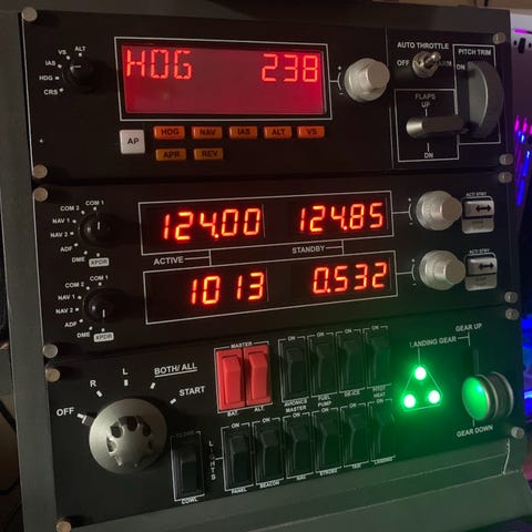 Sett med yoke-ratt og separat throttle quadrant med tre spaker og flere dreie- og trykkbrytere. Enhetene kobles til med kabel og er beregnet for bruk med flysimulator på PC. Yoken har innebygde knapper og brytere på fronten, samt festeanordning for montering på bord eller pult.