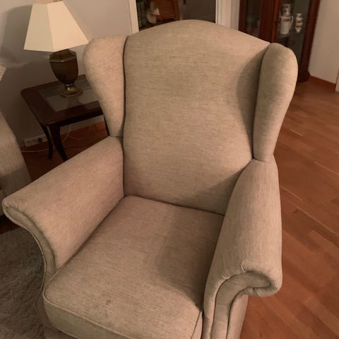 Lysebrun sofa selges. Må hentes og bæres ut selv. Har noen bruksmerker på hver side av sofaen etter litt kloring fra katt. Ingen dype skader på sofaen.