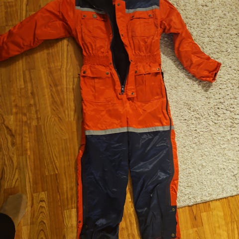 Arbeidsdress i hel modell med lange ermer og lange ben. Farge oransje. Egnet som arbeids- eller vernedress. Str 52.