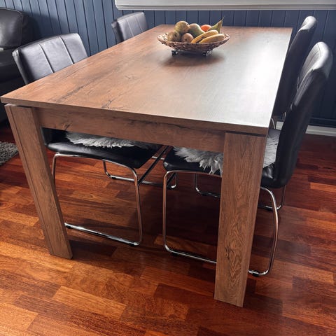 Selger et spisebord og 4 stoler fra Jysk.