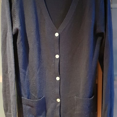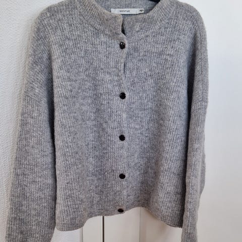 Gestuz cardigan i størrelse L, blågrønn farge. Helt ubetydelig brukt, ingen merker eller skader.