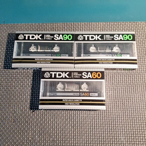 Dette er klassiske 60-minutters kassetter fra Tandberg, med skrudd kassettkonstruksjon.