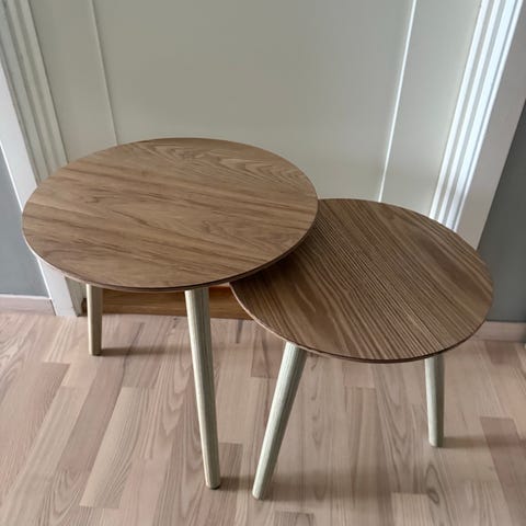 Bordene har et stilrent og tidløst design, og kan brukes sammen som settbord eller hver for seg som sidebord. Passer godt i stue, ved sofaen eller som ekstra avlastningsbord.