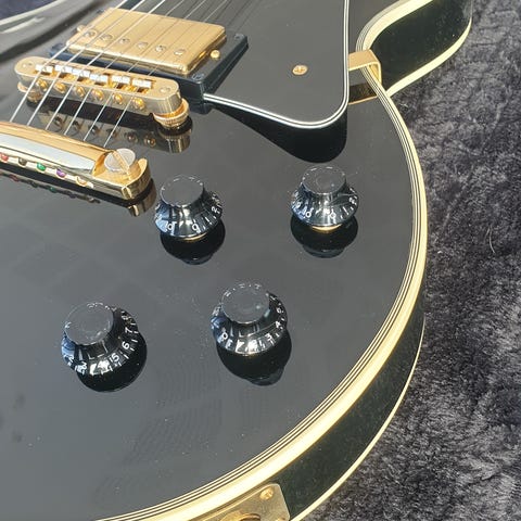 Burny Les Paul Custom vurderes solgt. Denne er ganske sikkert produsert i 1992 (det er ikke serienummer på disse gitarene, men diamanten på headstocken og pickup ringene tilsier det årstallet). Laget i Japan. Har ikke kasse til denne og ser helst at den blir hentet på Vinterbro, men det er mulig å sende. Kan være interessant med bytte i japansk/usa explorer eller japansk 335 type gitar. Kan også ta Apple Watch ultra 2/3 som delbetaling Ganske så bra stand for alderen, men finnes jo noe bruksslitasje og hakk