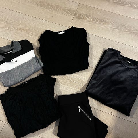 Selger en klespakke med 64 plagg, plaggene er i str xs-m, men alt tilsvarer vel egentlig s. En del av klærne er aldri brukt, og resten er generelt lite brukt. ☺️ Noe av plaggene som er med i klespakken er ikke avbildet da det ble med etter bildene ble tatt.