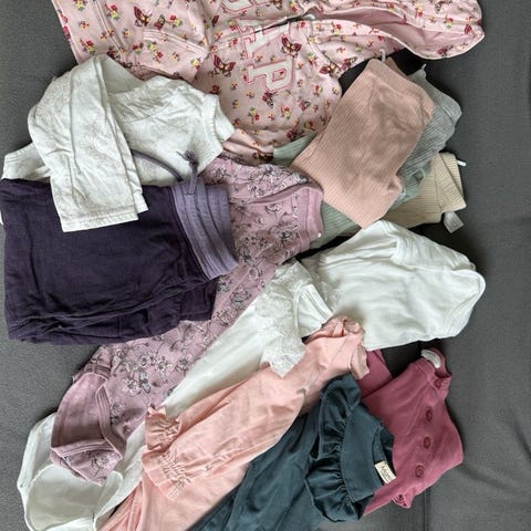 Klespakke. Devold, Hust & Claire og flere. barneklær for jente i størrelse 92. Pakken består av ulike plagg i flere farger, blant annet overdeler og underdeler i myke materialer egnet til hverdagsbruk. Klærne har fargetoner som passer godt sammen, og er tilpasset små barn i denne størrelsen. Alle plagg i ull. Pent brukt.