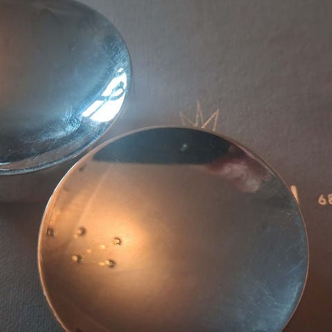 Rustfritt stål. Inspirert av elvestener fra Hardangerfjorden. Fint til hverdag og fest. Flott til gave også. Måler salt bøssen 7.1 cm lang og 5.5. cm bred. Pepper bøssen 5.1 cm lang x 4 cm bred. Ingen skader eller flekker på de. Hentes på Åkra eller sendes mot porto kr 69 postnord som er sporet. Har vipps. Ps. 500 kr på butikken.