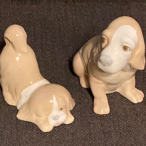 To nydelige geitekilling‑figurer fra Bing & Grøndahl selges samlet. Klassiske, håndmalte porselensfigurer i hvit glasur med grå detaljer – et tidløst uttrykk som passer både samlere og deg som liker dansk design.