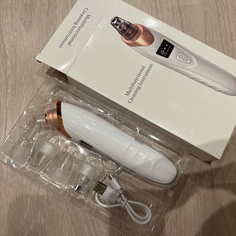 Electrical Vacuum Pore Cleaner ansiktsrenser i hvit farge. Elektrisk porerenser med vakuumfunksjon for fjerning av hudormer. Enheten har av/på-knapp på fremsiden og utskiftbart munnstykke i plast. Leveres i originalemballasje som vist på bildene. Egnet til bruk i ansiktet for både kvinner og menn.
