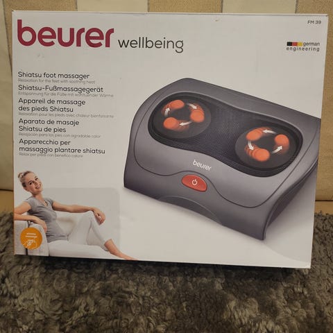 Massasjebelte for rygg, nakke og skuldre. Etterligner Shiatsu-massasje. Virker avkoblende, og pleier ømme muskler. Med varme- og lysfunksjon.