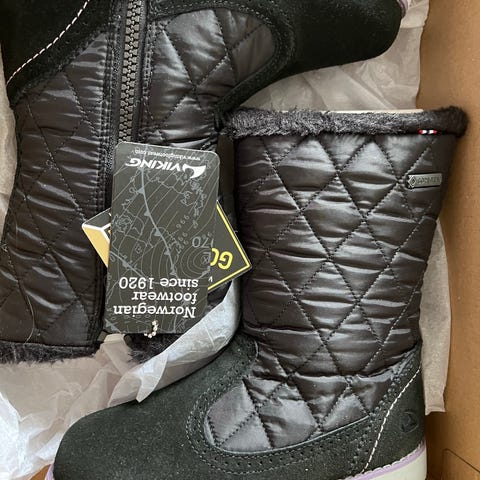 Selger veldig pent brukte Viking barnesko i størrelse 26. Vi rakk nesten ikke bruke disse før de ble for små. Varme og gode sko som vi har vært fornøyd med 😊