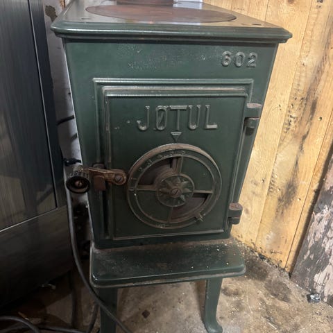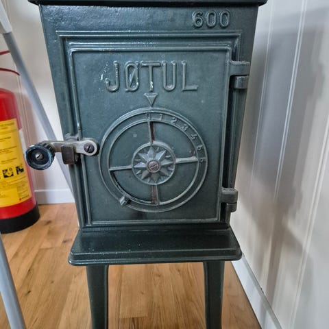 Jøtul 600 grønn vedovn i solid støpejern. Ikke rentbrennende. Klassisk, frittstående modell med frontdør og justerbart luftspjeld i døren. Ovnen har toppplate med rund kokeplate samt røykrørstilkobling bak. Egner seg godt både som effektiv varmekilde og som beredskapsovn for matlaging ved strømbrudd.