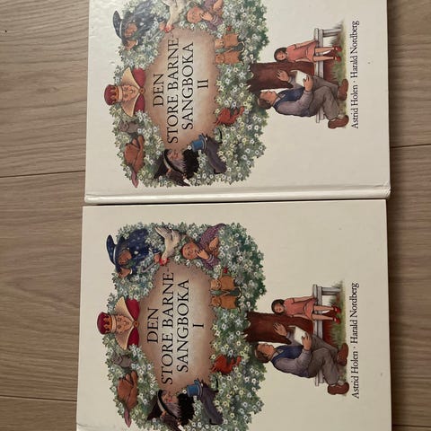 Den store barnesangboka bind I og II sangboksett. To innbundne bøker med barnesanger, illustrert av Harald Nordberg. Bøkene inneholder et utvalg norske barnesanger og regler samlet i to bind, egnet for høytlesning og sang med barn.