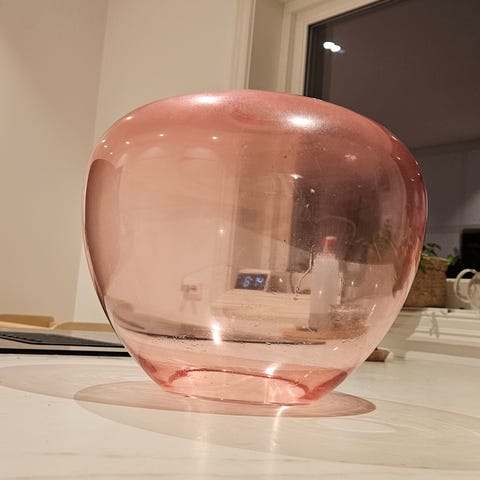 Lampeskjerm i mørk rosa/burgunder fløyel. Diameter 33 cm. Må hentes i høvåg.