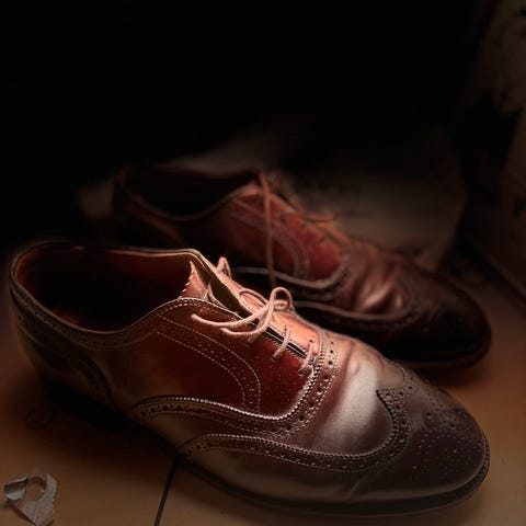 Tatt alderen i betraktning framstår skoene som veldig pene. Skinnet er fint, men det har falt av en liten bit på lappen over vampene. «Welden» er litt sliten, men er farget pent sort. Den svarte båndet rundt lappen der lissehullene er er slitt/ødelagt, men lite synlig når det er lisser på. Mer at bildene med veldig lys på for å vise dette ikke er representative for hvordan skoene framstår i vanlig lys. Det er selvfølgelig slitasje på en gammel sko, så se på bildene.