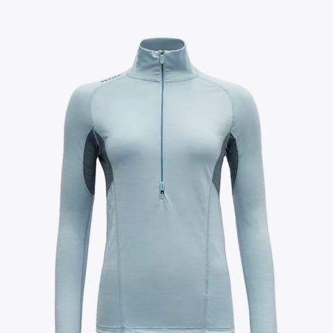 2XU treningsgenser for dame i størrelse XS. Genseren har høy hals med halv glidelås og lange ermer. Den er lyseblå og laget i et lett, teknisk materiale som egner seg til trening og annen fysisk aktivitet. Passer godt som mellomlag eller alene ved innendørs og utendørs bruk.