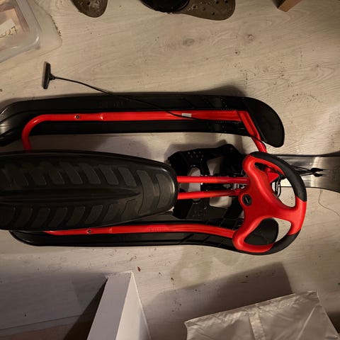 Stiga akebrett med ratt i svart og rød farge.