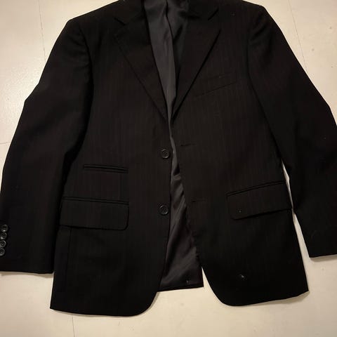 Svart dressjakke, stripete stoff, str 146