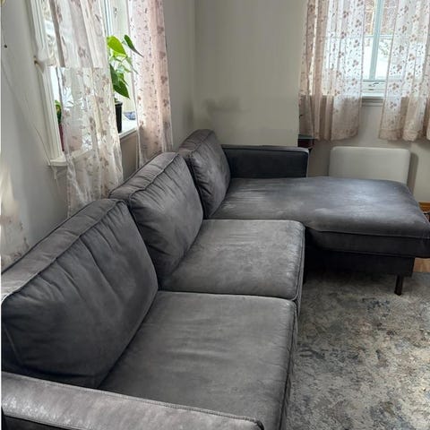 Ikke renset, men trekk kan tas av og vaskes.