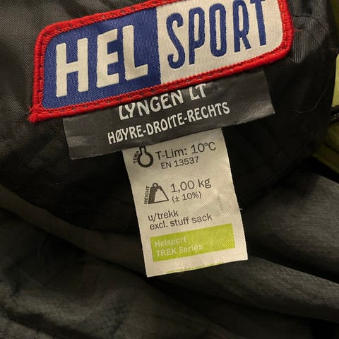 Helsport Lyngen LT sovepose med glidelås på høyre side og en med glidelås venstre side Vekt er ca. 1 kg uten pakkpose. Egnet som lett sovepose til bruk i milde temperaturer, for eksempel på tur, camping eller overnatting innendørs. Farge fremstår som mørk/oliven.